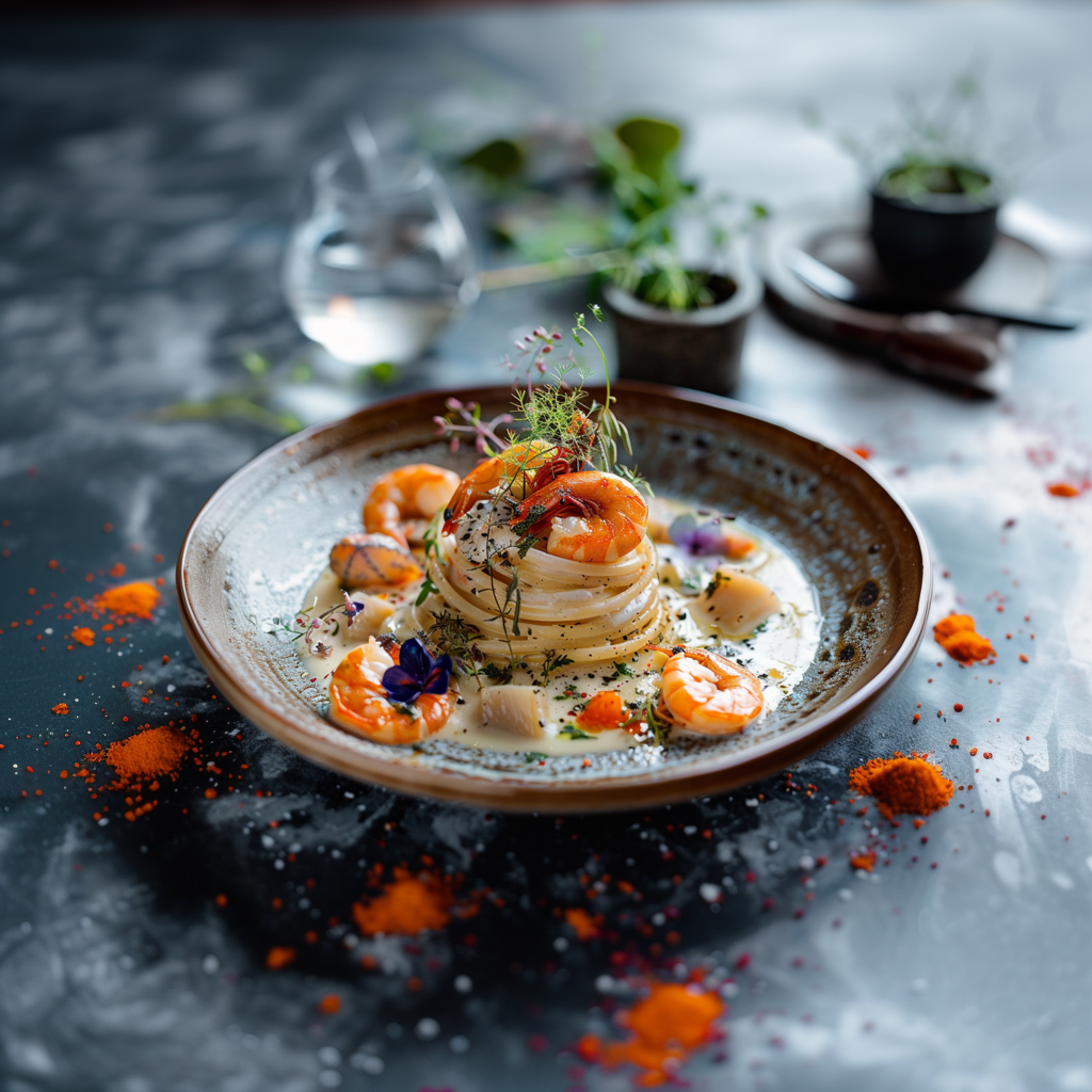 - Servieren Sie die Linguine mit den roten Garnelen (roh oder leicht angebraten).